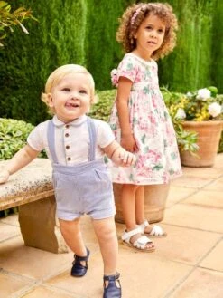 Jojo Maman Bebe JoJo Maman Bébé Blue 2-Piece Blue & White Peter Pan Collar Shirt & Shorts Set