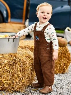 Jojo Maman Bebe JoJo Maman Bébé Burgundy 2-Piece Classic Cord Dungarees & Breton Top Sets