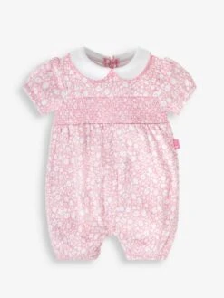 Jojo Maman Bebe JoJo Maman Bébé Pink 2-Piece Strawberry Floral Print Smocked Romper & Headband Set