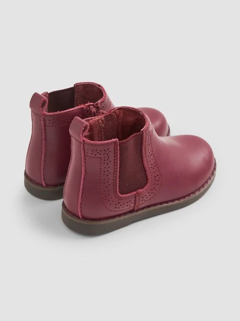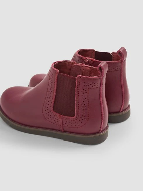 Add the perfect finishing touch to a smart casual look on chilly days with a pair of our pretty leather Chelsea boots, made from real leather for a luxurious feel. The classic style is perfectly paired with many of our dresses, skirts or cords and with soft padding, they’re really comfortable for little feet., Pretty floral brogue cutout design, elastic side panel for easy dressing, inner side zip opening, contrast colour stitching, extra supportive seams and anti-sweat cotton lining. Made of 100% leather and wipe clean only.