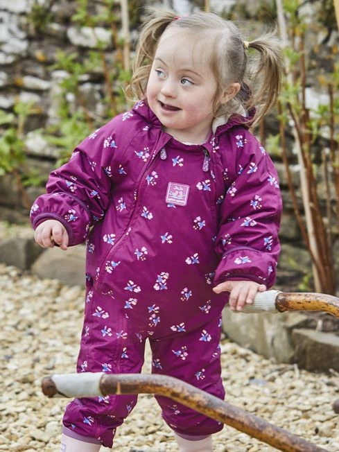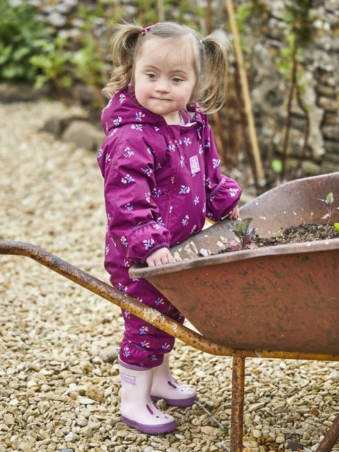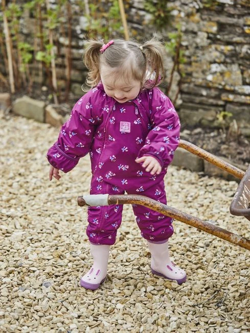 Our bird waterproof fleece lined all-in-one is bound to cheer up every grey day. The all-in-one style is easy to wear and looks adorable on little ones. But it’s extremely practical too – the waterproof fabric and taped seams will keep out the rain and wind, while the fleece lining and wadding will ensure your child is snug and happy. Plus, the environmentally conscious will be pleased to know it’s been made with 100% recycled fabrics. Bestselling style, features taped seams, double zip for easy dressing, fleece lined and wadded for extra warmth, peaked hood, mitten clip and hooks on sizes 6-9 months and up, and fold-over cuffs on arms and legs up to 18 months. Made from the equivalent of approx. 26 recycled plastic bottles.