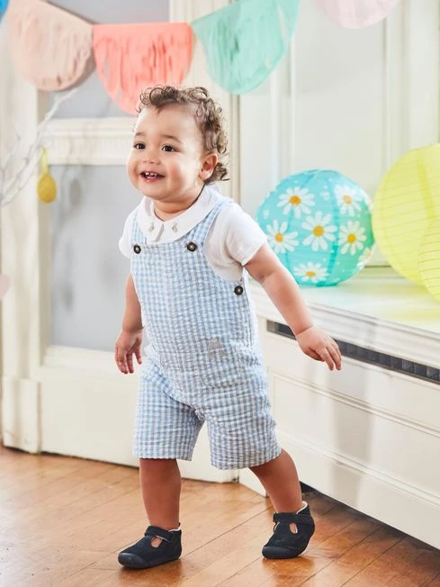 If you’re looking for a smart outfit for your baby that will keep them comfy all day long too, look no further. Our 2-Piece Blue Gingham Bunny Pocket Baby Dungarees Set has been crafted from supersoft cotton designed to be gentle on delicate skin, and features lots of practical details that make getting dressed and nappy changing easy. Available in classic gingham and featuring sweet embroidered details, this is the perfect outfit for summer occasions. 2-Piece Set. Includes gingham dungarees and bodysuit. Collar with bunny embroidery. Pocket with bunny embroidery on front. Popper back opening to bodysuit for easy dressing. Button shoulder opening to dungarees. Popper crotch openings to dungarees and bodysuit for easy nappy changing. Short-length dungarees.
