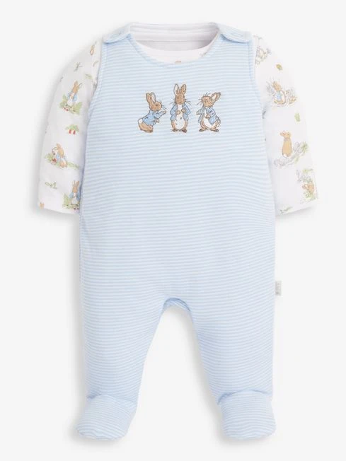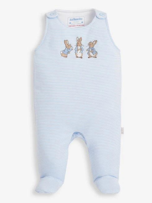 Layering is made easy with the two-piece Peter Rabbit baby dungaree set, the perfect addition to your baby’s wardrobe. Because the set is crafted from soft cotton, babies will feel super comfy all day long. Exclusive to JoJo, features a two-piece set, all-over stripe to dungarees, Peter Rabbit appliqué to front, and all-over Peter Rabbit print to the bodysuit with popper shoulder opening, long sleeves, and popper leg opening for easy changing. KEEP AWAY FROM FIRE. Please note: appliqué stitching may vary. 100% Cotton. Machine wash at 40°. Use delicate setting. Tumble dry on low. Warm iron on reverse. Do not dry clean.