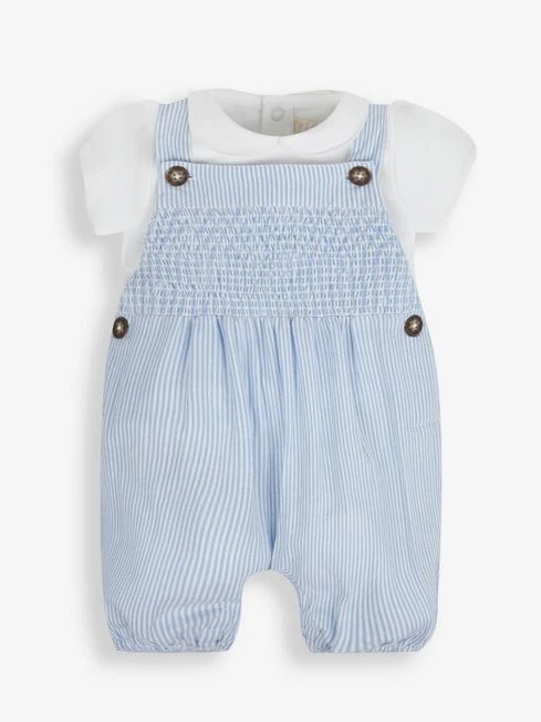Jojo Maman Bebe JoJo Maman Bébé Blue 2-Piece Smocked Short Dungarees & Collar Body Set