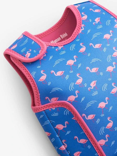 In the water, a warm baby is a happy baby which is where our baby wetsuit comes in. Neoprene provides a flexible, comfortable fit and helps keep little ones warm so they can stay in the water for longer. The wraparound style with Velcro™ fastening means it can be adjusted for the perfect fit, and it opens up completely flat for easy nappy changing, making it even more practical. All-over flamingo print. Keeps babies warmer for longer. Opens up completely for easy changing. Wraps around the body.