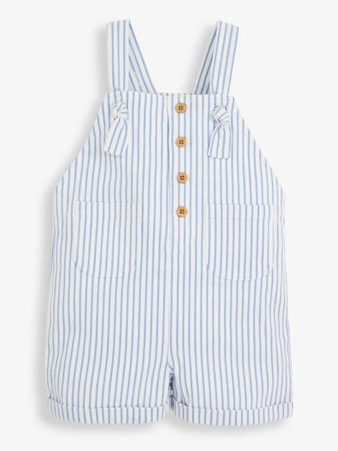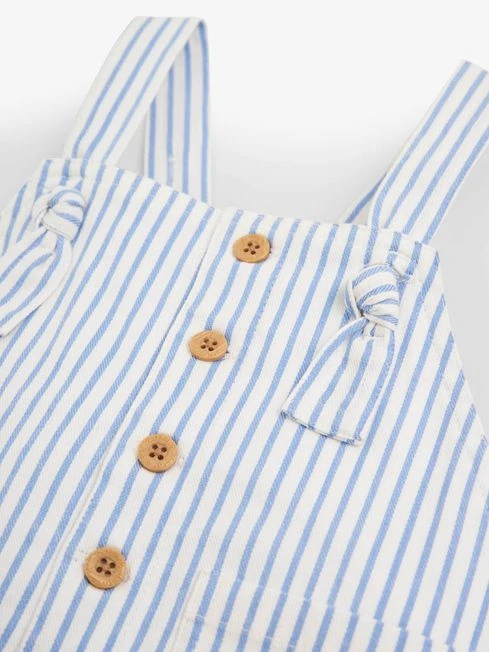 Classic blue and white stripe on cool and comfy cotton is the perfect combination for summer – perfect for hot days or holidays abroad. This sweet all-in-one style is so simple to wear, either alone when temperatures really heat up or layered over a T-Shirt on cooler days. Features all-over stripe, button front opening, wood effect buttons, knot adjustable straps, short style, pockets 96% Cotton, 4% Elastane.