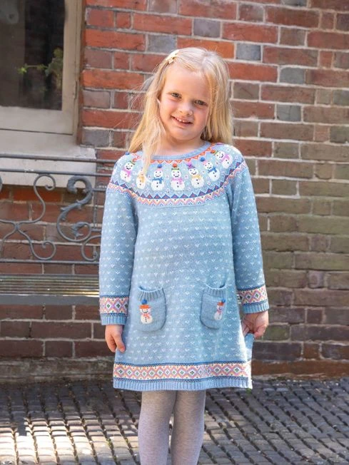 Adding a pop of colour to this classic style, our blue snowman Fair Isle knitted dress is a must-have for any winter wardrobe. The hint of cashmere in this dress gives it a luxuriously soft feel, making it an excellent choice for winter. It’s also machine washable, so it’s as practical as it is cute. Features a cashmere mix, snowman Fair Isle design, front pockets, ribbed neck and cuffs, round neck, long sleeves, and button back opening.
