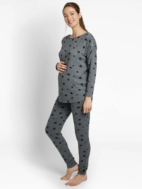 Jojo Maman Bebe JoJo Maman Bébé Charcoal Star Print Maternity & Nursing Lounge Set