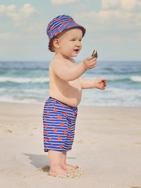 Help protect little heads from harmful UV rays with our Kids Crab Bucket Hat. Designed with a brim to provide shade on the face and with UPF 50+ protection, the bucket sun hat is a summer holiday essential. Plus it has been made with recycled plastics, making it a more sustainable choice than those made with traditional materials. Made with recycled plastics. Lightweight. Quickdrying. Cheerful colours make children easier to spot. Functional pocket detail with Velcro™ fastening. Matching Swim Shorts with Nappy available (H2462). This hat will provide protection against solar ultraviolet radiation and conforms to BS 8466. WARNING: Sun exposure causes skin damage. This item will only provide protection to areas directly covered and, to a lesser extent, areas shaded from the sun. Only covered areas are protected, other exposed areas of the body should be protected by a high factor sun cream. Protection offered by this item may be reduced with use, or if stretched or wet. Sun exposure causes skin damage. Young children are particularly at risk of sunburn because of their delicate skin, babies are especially vulnerable. Keep babies out of the sun. Hats cover heads plus help protect eyes from glare. We recommend our JoJo sunglasses which offer maximum UV 400, UVA and UVB protection for your child’s eyes.