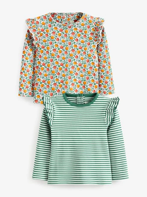 Jojo Maman Bebe JoJo Maman Bébé Cream 2-Pack Apple Print & Stripe Frill Tops