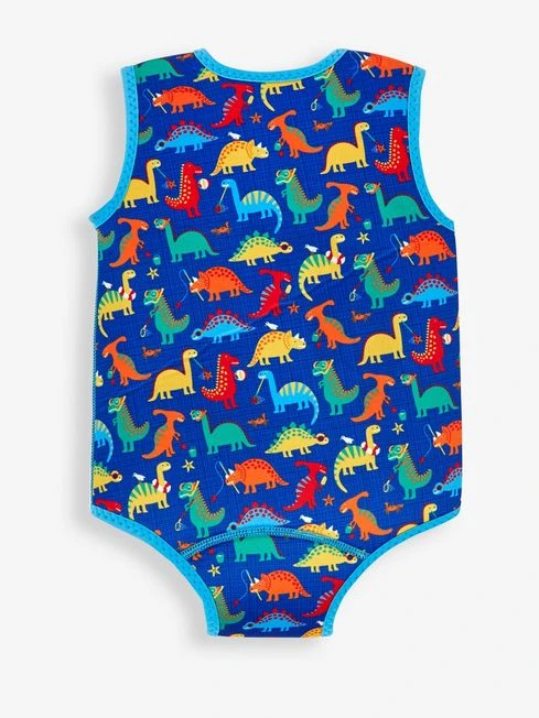 We know that a warm baby is a happy baby, which is why we developed our baby wetsuit. A Dino Print Baby Wetsuit features a flexible, comfortable fit and thick fabric that keeps little ones warm so they can stay in the water for longer. This wrap-around style diaper is adjustable with Velcro™ fastening, and it opens completely flat for easy diaper changing, making it even more convenient. All-over dinosaur print. Keeps babies warmer for longer. Opens up completely for easy changing. Wraps around the body. Velcro™ fastening Rinse by hand in 30 degree water immediately after use and allow to dry out of sunlight to avoid discolouration.