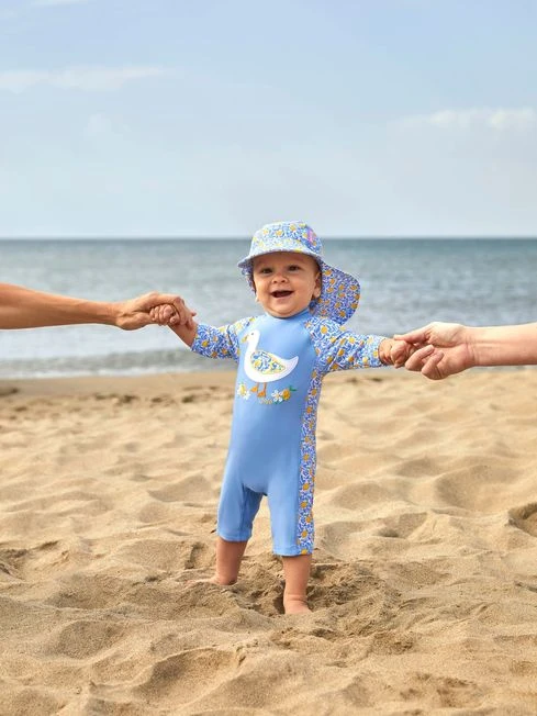 Our 1-Piece Duck UPF 50 Sun Protection Suit is an effective way to help protect children from harmful UV rays. Ideal for both playing in the sun and for swimming, it keeps covered areas safe from sunburn, enabling little ones to enjoy playing outside in the sun for longer. The lightweight, quick-drying fabric makes the sun suit even more practical, and the fun duck appliqué will delight kids. Plus, it has been made with recycled plastics, making it a more sustainable choice than those made with traditional materials. Made with recycled plastics. UPF 50+ (98% effective at blocking UVA rays). Lightweight. Quick-drying. Duck appliqué to the front. Cheerful design to make children easier to spot. WARNING: Sun exposure causes skin damage. This item will only provide protection to areas directly covered and, to a lesser extent, areas shaded from the sun. Only covered areas are protected, other exposed areas of the body should be protected by a high-factor sun cream. The protection offered by this item may be reduced with use, or if stretched or wet. Sun exposure causes skin damage. Young children are particularly at risk of sunburn because of their delicate skin, babies are especially vulnerable. Keep babies out of the sun.