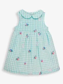 You can’t go wrong with classic styles when a smarter look is called for, and our Duck Egg Embroidered Baby Dress fits the bill perfectly. The traditional style complete with a Peter Pan collar, along with beautiful floral embroidery is an easy way to dress up your baby – cool cotton will keep their skin comfortable and it comes with matching knickers to use as a nappy cover. Gingham fabric. Floral embroidery. Peter Pan collar. Sleeveless. Button back opening for easy dressing. Gathering to empire seam. Comes with matching knickers to use as a nappy cover. Cotton lined.