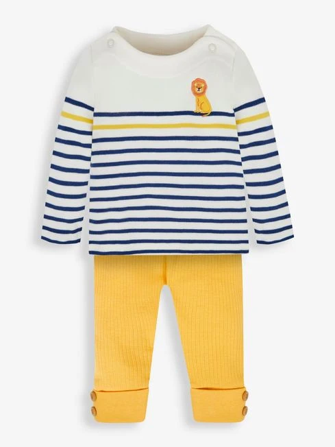This fantastic set makes getting your little one ready for the day so much easier! Featuring a stripe print top with a sweet lion detail to the front, as well as a pair of practical rib leggings. Whether they’re worn together or separately, they’ll look good in any wardrobe. 2-piece set. Includes top and leggings. Long sleeves. Round neck. Elasticated waist for stretch and comfort.