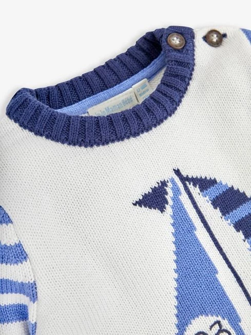 With the addition of a boat design, this classic Breton stripe has been given a stylish update. This jumper can be styled in a variety of different ways and is sure to become one of the staples in your childs wardrobe. It is easy to dress your child with the side neck opening, encouraging them to do it themselves. Supersoft touch Breton inspired Round neck Long sleeve Button shoulder opening for easy dressing.