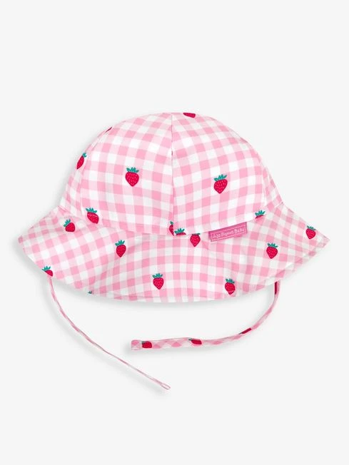 A hat is always recommended in the sun – kids are especially vulnerable, so a hat they will want to wear is essential. We love the Gingham Floppy Sun Hat UPF 50 because it is both fun and practical, and it coordinates well with many of our summer styles. It s also shaped to stay on little heads, meaning fewer lost hats! • All-over gingham print • Made with recycled plastics • UPF 50+ (98% effective at blocking UVA rays) • Lightweight • Quick-drying • Ties under chin • Cheerful colours make children easier to spot WARNING: Sun exposure causes skin damage. This item will only provide protection to areas directly covered and, to a lesser extent, areas shaded from the sun. Only covered areas are protected, other exposed areas of the body should be protected by a high factor sun cream. Protection offered by this item may be reduced with use, or if stretched or wet. Sun exposure causes skin damage. Young children are particularly at risk of sunburn because of their delicate skin, babies are especially vulnerable. Keep babies out of the sun. Hats cover heads and nape of necks plus help protect eyes from glare. We recommend our JoJo sunglasses which offer maximum UV 400, UVA and UVB protection for your child s eyes. 100% Recycled Polyester. • Machine Wash At 30° • Use Delicate Setting • Do Not Tumble Dry • Do Not Iron • Do Not Dry Clean