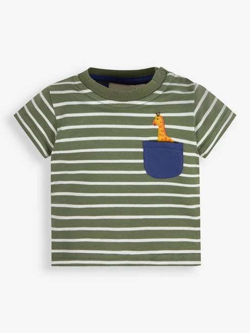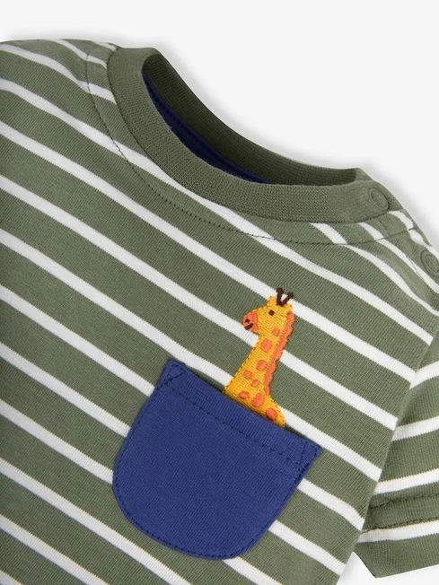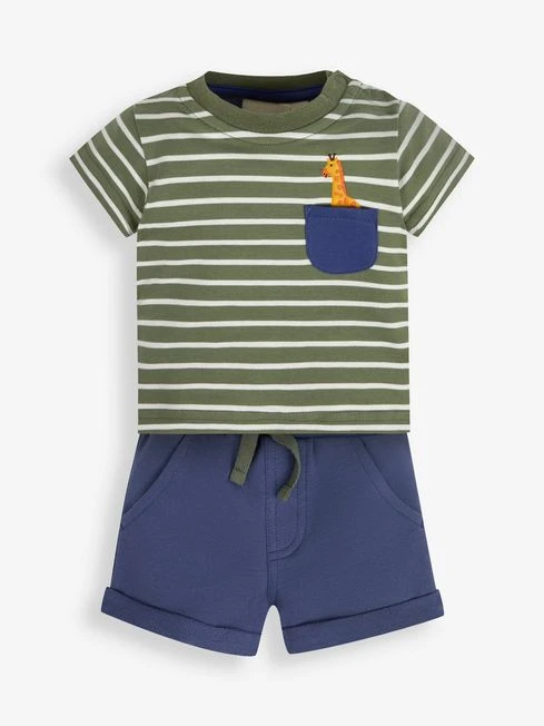 Jojo Maman Bebe Jojo Maman Bébé Green 2-Piece Khaki Stripe Giraffe Pocket T-Shirt & Shorts Set