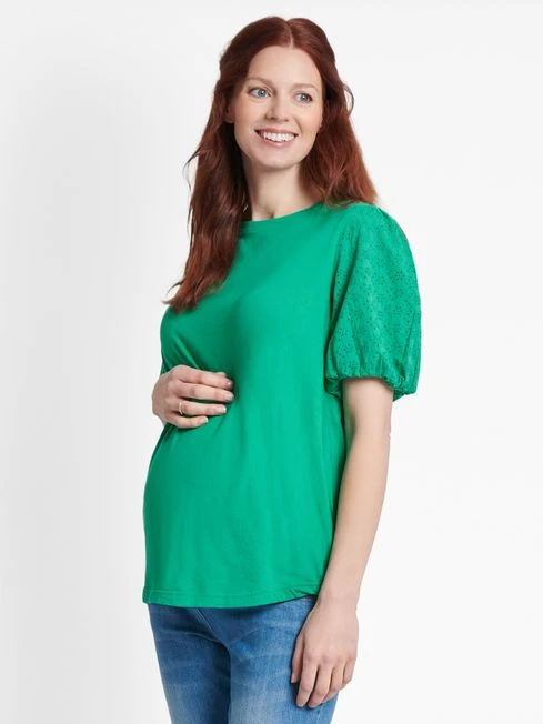 Jojo Maman Bebe JoJo Maman Bébé Green Broderie Sleeve Maternity T-Shirt