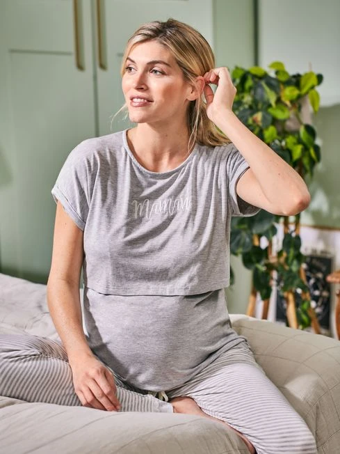 The Grey Marl Maman Maternity & Nursing Pyjama Set makes the perfect indulgent purchase for yourself or as a gift for a loved one who is expecting or has recently welcomed a new baby. Made from supersoft fabric with a hint of stretch, this set of pyjamas is the ultimate in comfort and is just as practical too – simply lift up the overlayer on the top to reveal cleverly concealed feeding slits for quick and easy access during those nighttime feeds. Designed to fit during and after pregnancy. The set includes pyjama bottoms and a T-Shirt. Concealed feeding slits in the underlayer for easy and discreet nursing access. Skinny fit trousers. Wide jersey waistband to wear under or over the bump. Drawstring to adjust to your changing shape. Cuffed legs. Machine wash at 40°. Use a delicate setting. Do not tumble dry. Cool iron on reverse. Do not dry clean.