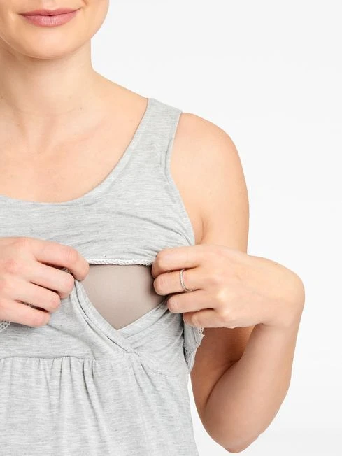 This maternity and nursing pyjama set makes the perfect indulgent purchase for yourself if you’re expecting, it or as a gift to a loved one. Made from supersoft, stretchy fabric, the Grey Marl Maternity & Nursing Short Pyjama Set is the ultimate in comfort, and is really stylish too – you’ll be reaching for it time and time again. If you decide to breastfeed, simply lift up the outer layer on the top to reveal concealed feeding slits beneath for quick and easy breast access during those night feeds. Designed to fit during and after pregnancy. The set includes a pyjama top and shorts. Concealed feeding slits in under layer for easy and discreet nursing access. Supersoft fabric. Wide jersey waistband to wear under or over the bump. Drawstring to adjust to your changing shape. Pretty lace detail.