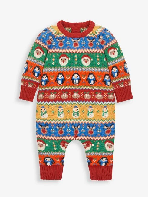 Jojo Maman Bebe JoJo Maman Bébé Multi Coloured Christmas Fair Isle Knitted Baby All-In-One