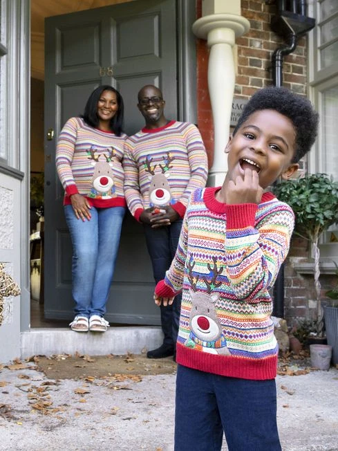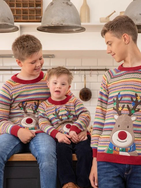 Our Red Reindeer Appliqué Fairisle Pattern Jumper features a traditional pattern that’s perfect for the festive season, as well as a large reindeer appliqué for that extra special festive touch. It is made with a hint of cashmere, so it will feel comfortable against your child s skin, as well as both warm and soft – perfect for Christmas day. Fairisle Pattern Christmas design with reindeer appliqué. Cashmere mix. ribbed edges. round neck, long sleeves. Back opening for easy dressing Take care of your knitwear, read our Wool Care Guide. We recommend the JoJo Knitwear Comb to tackle any bobbles.