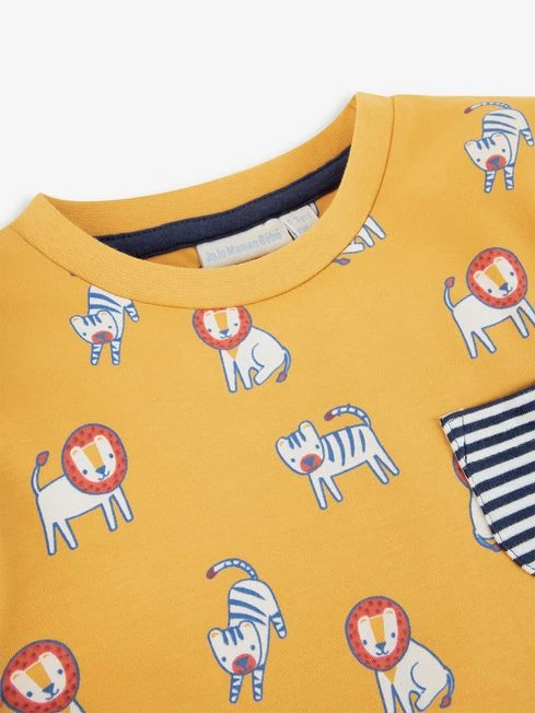 Jojo Maman Bebe JoJo Maman Bébé Mustard Lion & Tiger Print Pocket T-Shirt