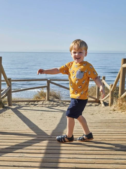 With updated versions of classic pieces, your child’s wardrobe can be made more versatile whilst remaining practical. With its all-over big cat print and contrast stripe pocket, the Mustard Lion & Tiger Print Pocket T-Shirt transforms a classic tee into something extra special. All-over big cat print. Contrast stripe pocket to the chest. Round neck. Short sleeves.