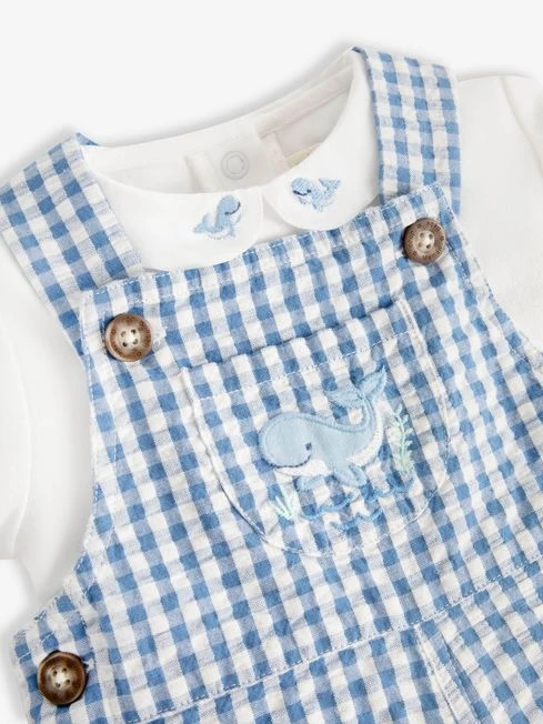 Jojo Maman Bebe JoJo Maman Bébé Navy 2-Piece Gingham Whale Embroidered Dungarees & Collar Body Set