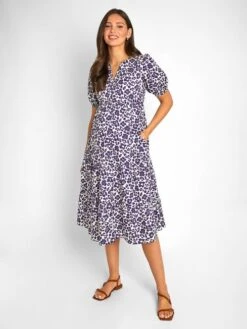 Jojo Maman Bebe JoJo Maman Bébé Navy Animal Print Tiered Maternity Midi Shirt Dress