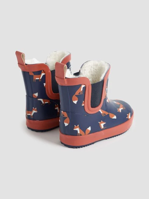 Our children’s wellies are without a doubt one of our most popular products. Made from natural rubber, they are soft, supple, flexible, and comfier for little feet than plastic wellington boots. The sole is gently ridged and grippy, giving a little extra stability on wet ground – perfect for jumping in muddy puddles all day long! Features all-over fox print, ankle height wellies, cosy lined and ridged soles for better grip.