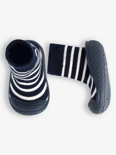 Stripe Indoor Outdoor Slipper Socks keep your baby’s toes toasty all season long. With their anti-slip soles, they’re perfect for new walkers and bigger kids alike, especially if your home has wooden floors. As pram shoes, they re also excellent and stay on while you’re out and about. • Navy stripe design • Stretchy sock for comfort and fit • Anti-slip sole • Ideal for new walkers • Can be worn inside or outside Upper: Textile, Lining: Textile, Sole: Other.