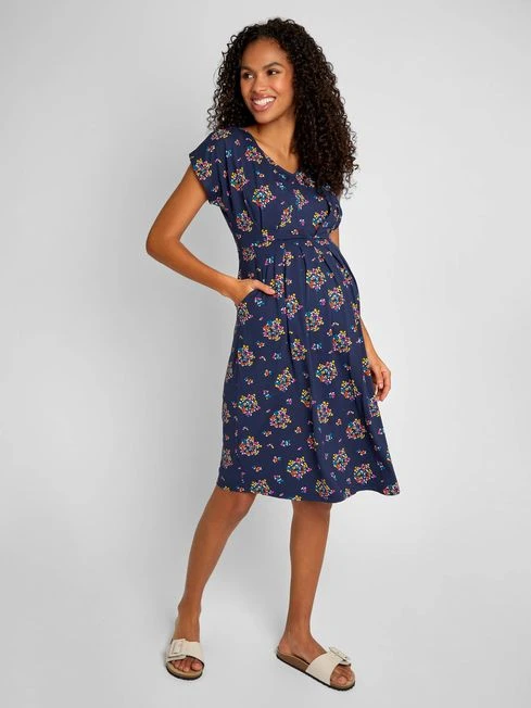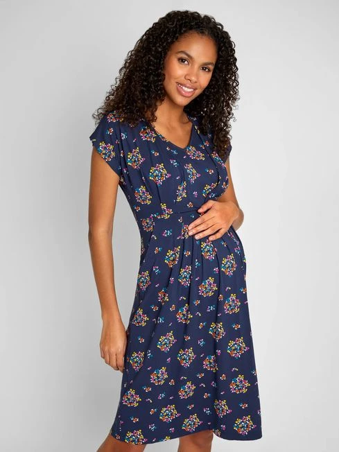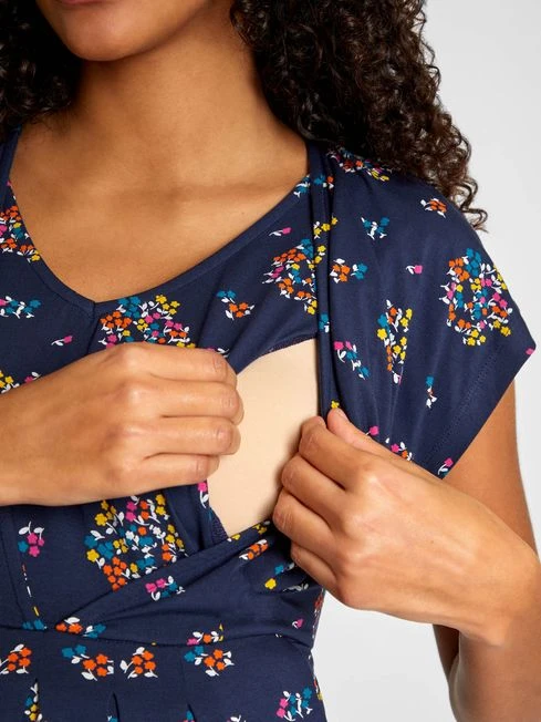 Jojo Maman Bebe JoJo Maman Bébé Navy Floral Pleated Maternity & Nursing Tunic Dress