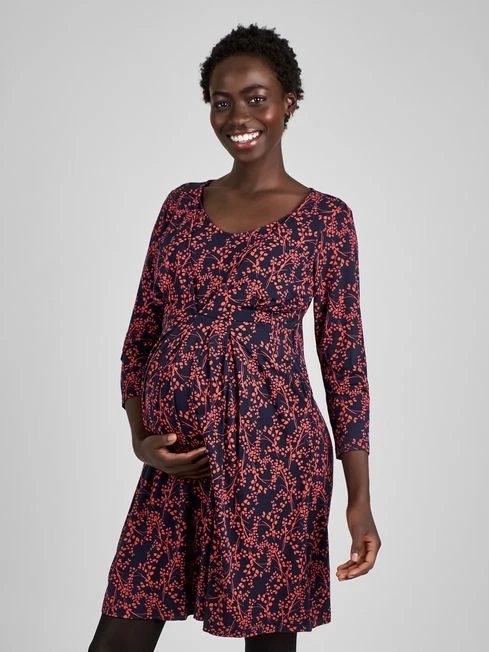 Jojo Maman Bebe JoJo Maman Bébé Navy Leaf Print Maternity & Nursing Pleat Tunic Dress