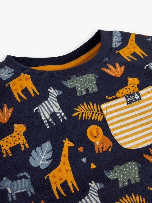 With updated versions of classic prints, your child s wardrobe can be made more interesting while remaining versatile. With its all-over safari animal print and contrast stripe pocket, the Navy Safari Print Pocket T-Shirt transforms a classic tee into something extra special. • All-over safari print • Contrast stripe pocket to chest • Round neck • Short sleeves