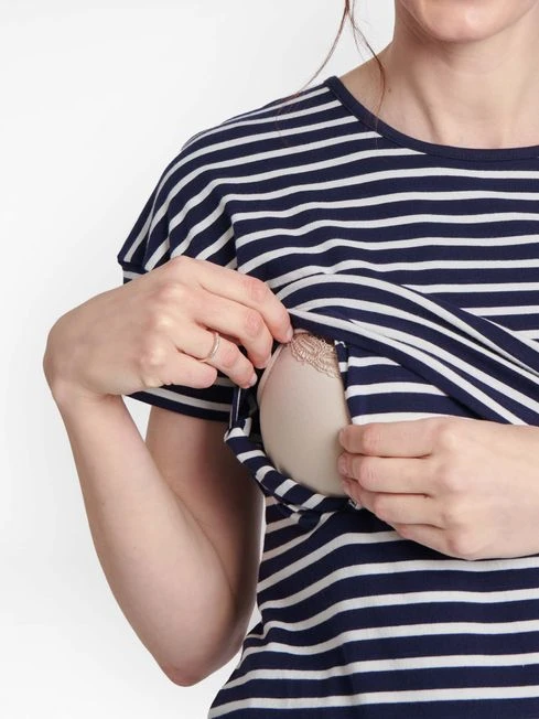 The Navy Stripe Maternity & Nursing Short Pyjama Set makes the perfect indulgent purchase for yourself or as a gift for a loved one who is expecting or has recently welcomed a new baby. Made from supersoft cotton with a hint of stretch, this set of pyjamas is the ultimate in comfort and is just as practical too – simply lift up the overlayer on the top to reveal cleverly concealed feeding slits for quick and easy access during those nighttime feeds. We are proud to invest in making cotton production more sustainable; find out more here. Designed to fit during and after pregnancy. The set includes pyjama shorts and a T-Shirt. Concealed feeding slits in underlayer for easy and discreet nursing access. Wide jersey waistband to wear under or over the bump.