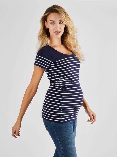Our Breton maternity T-shirts are always popular which is why we created a nursing version. The stylish, classic combination of Breton stripes and scoop neck won’t go out of fashion and with the help of your favourite accessories, can be dressed up or down for countless occasions. Hidden feeding slits offer easy access for breastfeeding when you’re out and about, giving you one less thing to worry about. Designed to fit after pregnancy. Breton inspired. Double layer. Feeding slits for easy nursing access. Maximum modesty. Short sleeves. Scoop neck. Stretch cotton. 95% Cotton, 5% Elastane. Machine wash at 30°. Use delicate setting. Do not tumble dry. Warm iron on reverse. Do not dry clean.
