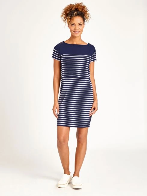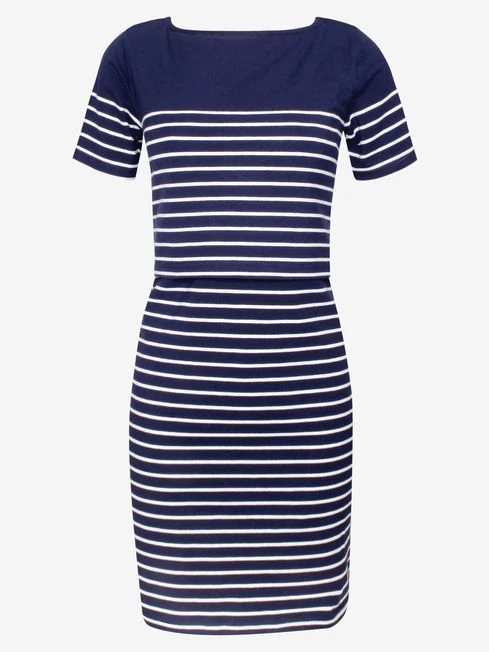 Our Breton maternity dresses are always popular which is why we created a nursing version. The stylish, classic combination of Breton stripes and a boat neck won t go out of fashion and with the help of your favourite accessories, can be dressed up or down for countless occasions. Hidden feeding slits offer easy access for breastfeeding when you’re out and about, giving you one less thing to worry about. Bestselling style Designed to fit after pregnancy Stretch cotton Easy and discreet breastfeeding access Feeding slits in under layer Pull-on style Short sleeves.