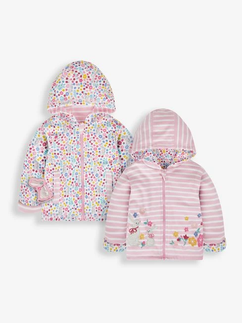 Jojo Maman Bebe JoJo Maman Bébé Pink Bunny Floral Applique Reversible Hoodie