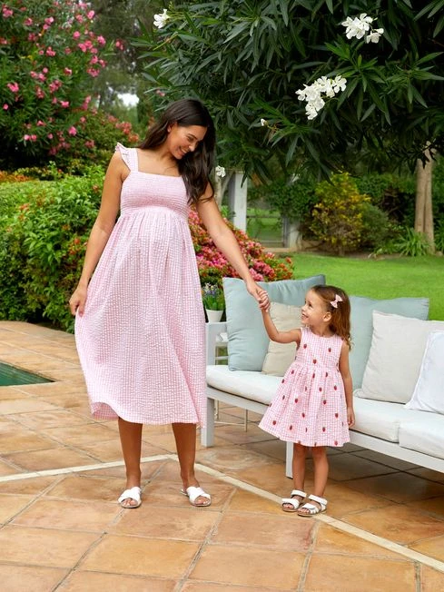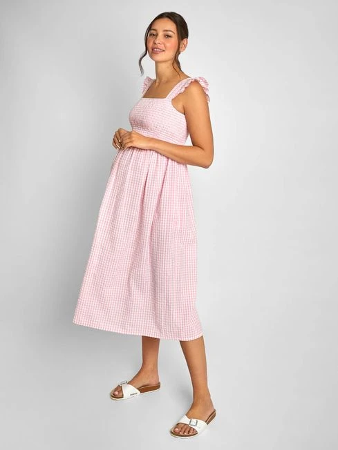 Jojo Maman Bebe JoJo Maman Bébé Pink Gingham Shirred Maternity Midi Dress