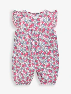 With all-in-ones, you can create an outfit with minimal effort and maximum style without any effort on your part. Our Pretty Strawberry Print Pretty Sunsuit – adorned with sweet strawberries and flowers – is perfect for summer and will keep your little one cool and comfortable all day long. All-in-one style. All-over strawberry print. Popper leg opening for easy changing. Back opening for easy dressing. Round neck. Ruffle sleeves.