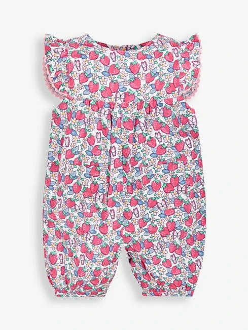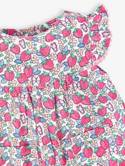 Jojo Maman Bebe JoJo Maman Bébé Pink Strawberry Print Pretty Sunsuit