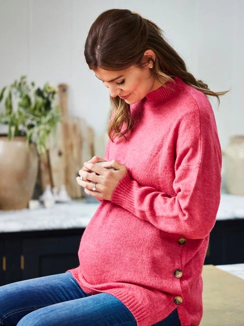 This season, add extra warmth to your maternity wardrobe with our classic Pink Turtle Neck Maternity & Nursing Jumper. Beautifully designed in a mid-weight knit, it’ll keep you warm without being too heavy, and it will retain its shape after every wash. With the side button openings, you can also effortlessly breastfeed your baby, so you will get plenty of use out of it after your little one arrives. Designed to fit during and after pregnancy. Turtle neck. Long sleeves. Button side openings for easy breastfeeding access. Ribbed neck, cuffs and hem for comfort Take care of your knitwear, read our Wool Care Guide. We recommend the JoJo Knitwear Comb (E2031) to tackle any bobbles.