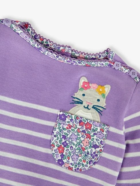 Jojo Maman Bebe JoJo Maman Bébé Purple Cat Pocket Breton Top