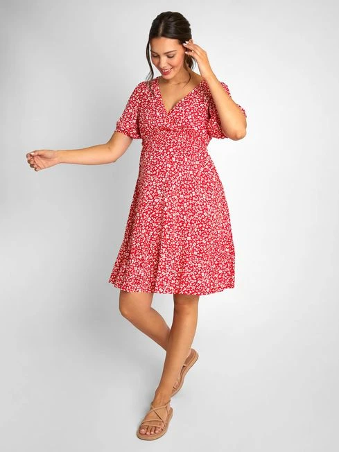 If you’ve got a party, wedding or any other special occasion coming up, our Red Ditsy Print Tiered Maternity Dress is the perfect piece to ensure you look and feel fabulous all day long. Made from a supersoft, lightweight fabric, it will keep you cool and comfortable, and the floaty fit offers an effortless vibe. Designed to fit throughout pregnancy Allover floral print Supersoft fabric Vneck Half sleeves Tiered hem Do not dry clean.
