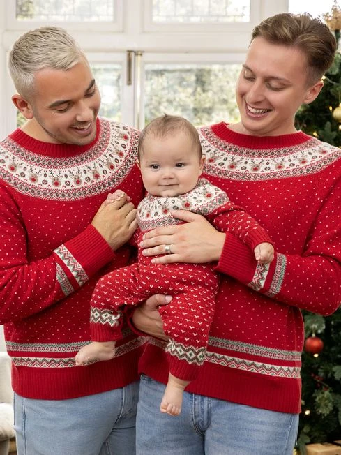 This Christmas Fair Isle knitted baby all-in-one is perfect for the festive season. Featuring a traditional pattern and made with a hint of cashmere, this reindeer all-in-one is extremely soft on your baby’s skin and makes a great first Christmas outfit. The fabric can also be machine washed, so it’s practical as well as adorable. Features a Fair Isle Christmas design, soft cashmere mix, ribbed cuffs, popper front and leg openings for easy dressing, and round neck.