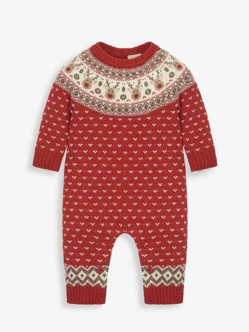 Jojo Maman Bebe JoJo Maman Bébé Red Reindeer Fair Isle Knitted Baby All-In-One