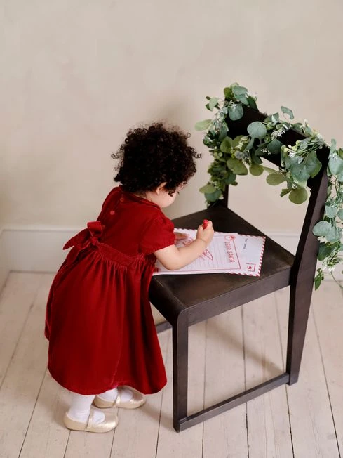 A traditional style is always adorable on little ones, and our Red Velvet Smocked Party Dress is no exception. This is a beautiful dress with adorable details such as the Peter Pan collar, smocked front, and stunning red velvet material. You can easily dress this up for the party season. Classic red velvet. Peter Pan collar. Short sleeves. Smocked front. Gathers at the waist for a full effect. Button back opening for easy dressing.