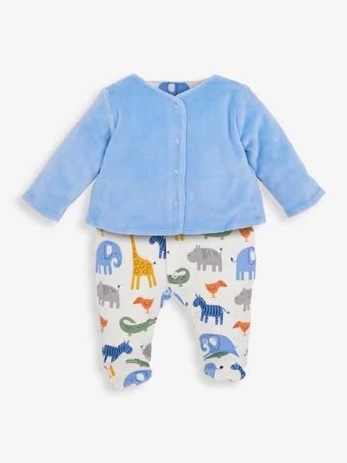 Jojo Maman Bebe JoJo Maman Bébé Safari 2-Piece Blue Sleepsuit & Velour Jacket Set