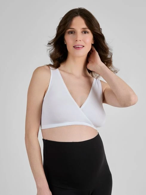 The Two-Pack Maternity & Nursing Sleep Bras are a basic but essential style needed in the last few months of pregnancy and after birth too. The super comfortable pull-on cotton style is fantastic for gentle nighttime support, while the crossover front is easy to pull aside for feeding access. Two per pack. Bestselling style. Designed to fit during and after pregnancy. Easy feeding access. Super comfortable soft stretch cotton. Gentle support. Pull-on style. Lace trim. 95% Cotton, 5% Elastane. Machine wash at 30°. Use a delicate setting. Tumble dry on low. Cool iron on reverse. Do not dry clean.